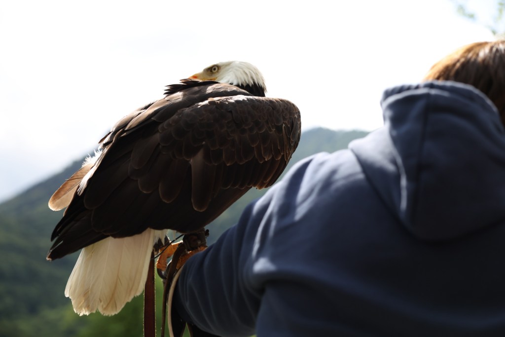 Hauptthema erneut: Wie wird Cora die Weisskopfseeadlerdame ihre Angst vor grossen Objektiven los? Eine Hypersensibilisierung in der Stadt mit einer Fotografin wird diskutiert.
