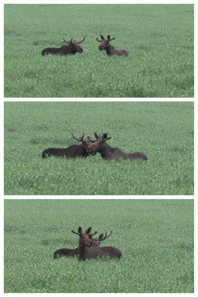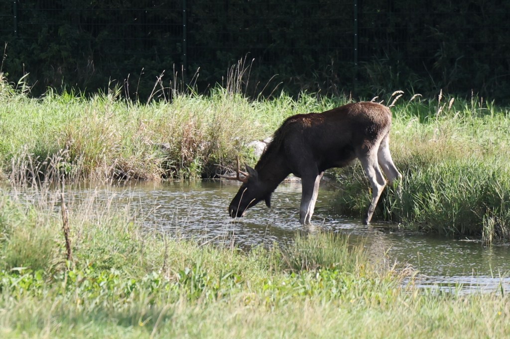 Herr Elch wird darauf hingewiesen dass eine Mischnutzung der Wasserflächen untersagt ist und der kleine Bengel nicht immer beim Trinken im Tümpel stehen soll.