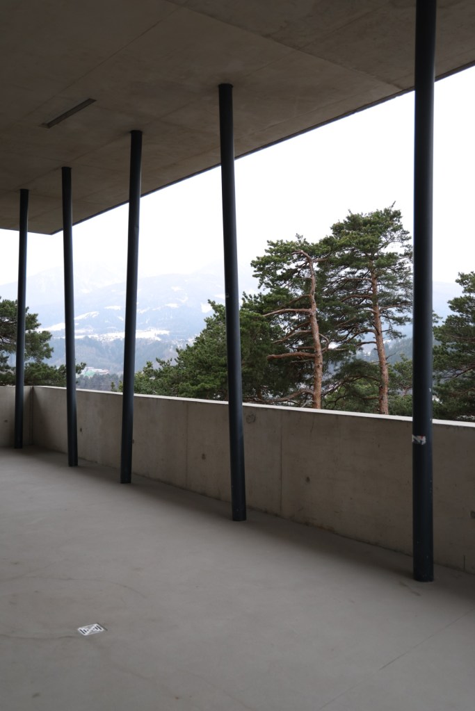 In der anderen Ecke geht es über eine sehr schiefe Ebene an den höchsten Punkt des Gebäudes