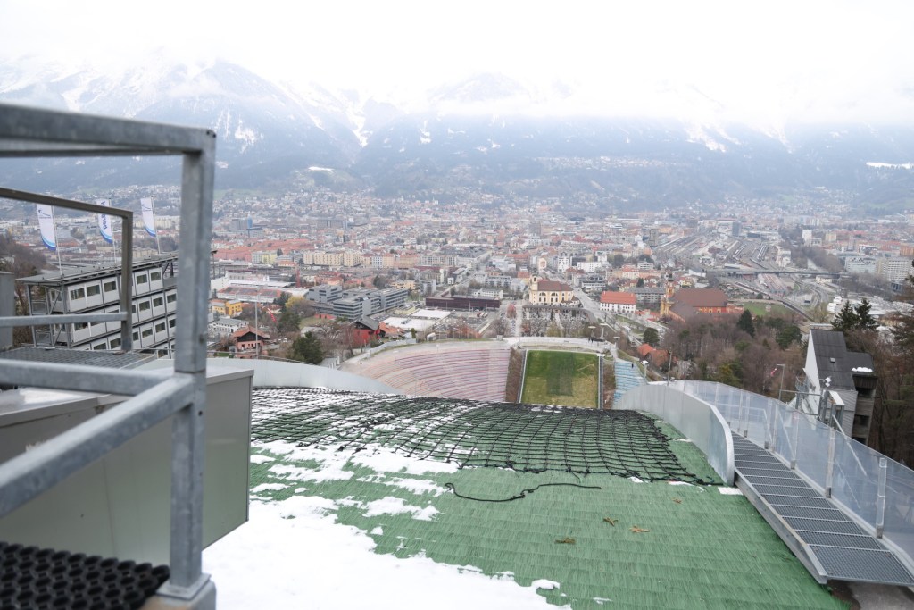 Angekommen im Süden: Hotelturm und WWK Arena, die Alpen nur zu ahnen