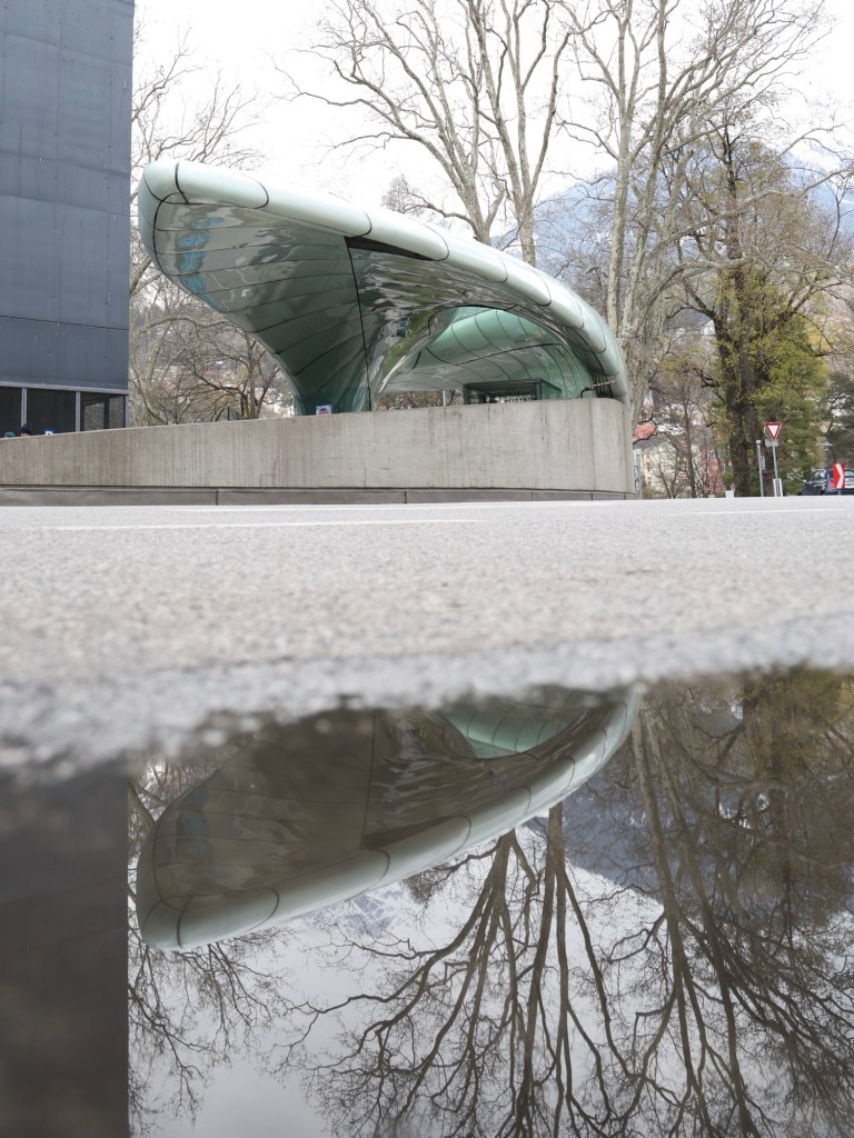 Drei Kanten des Gebäudes sind grad und fast langweilig, sind aber halt auch „hinten“