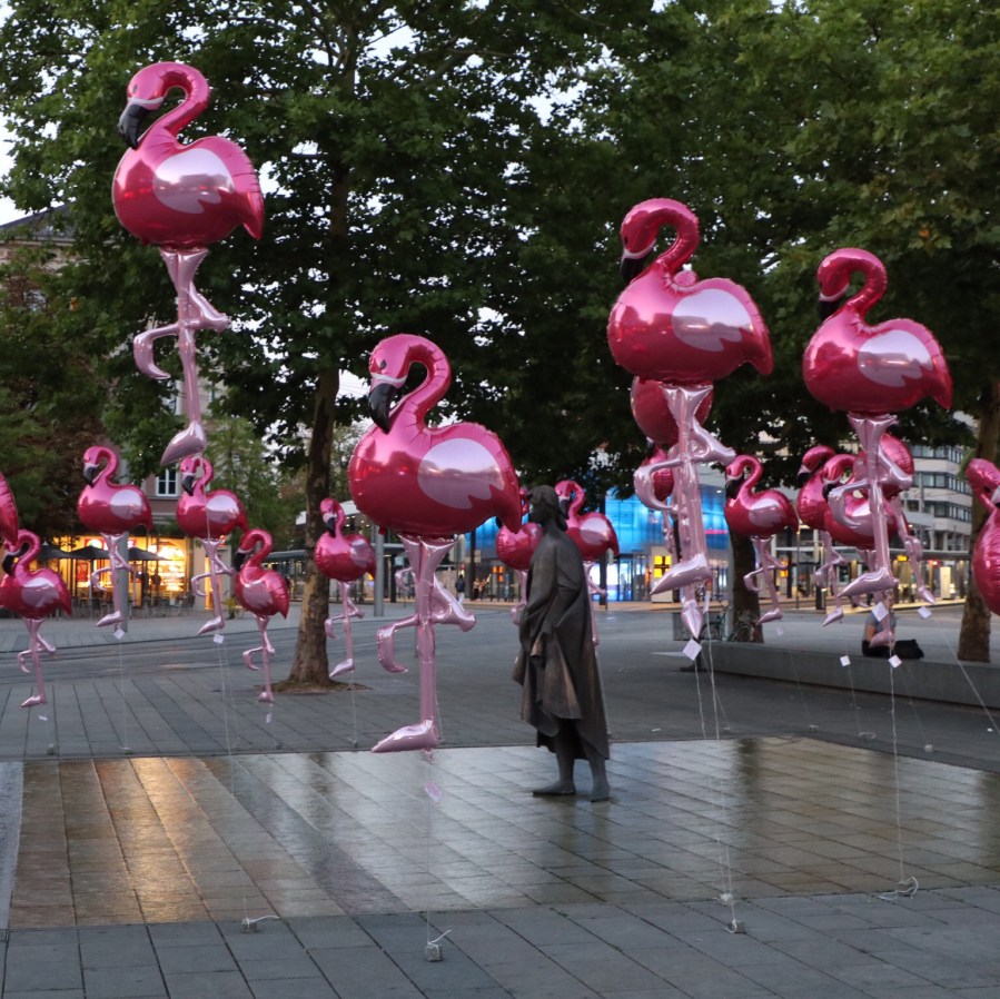 Wenn man morgens um 6:00 gemütlich seinen üblichen Weg zum Bahnhof geht… und einem plötzlich 50 Flamingos gegenüber stehen…