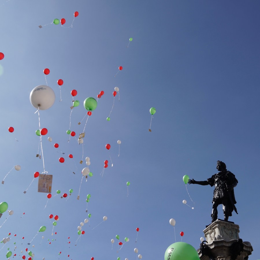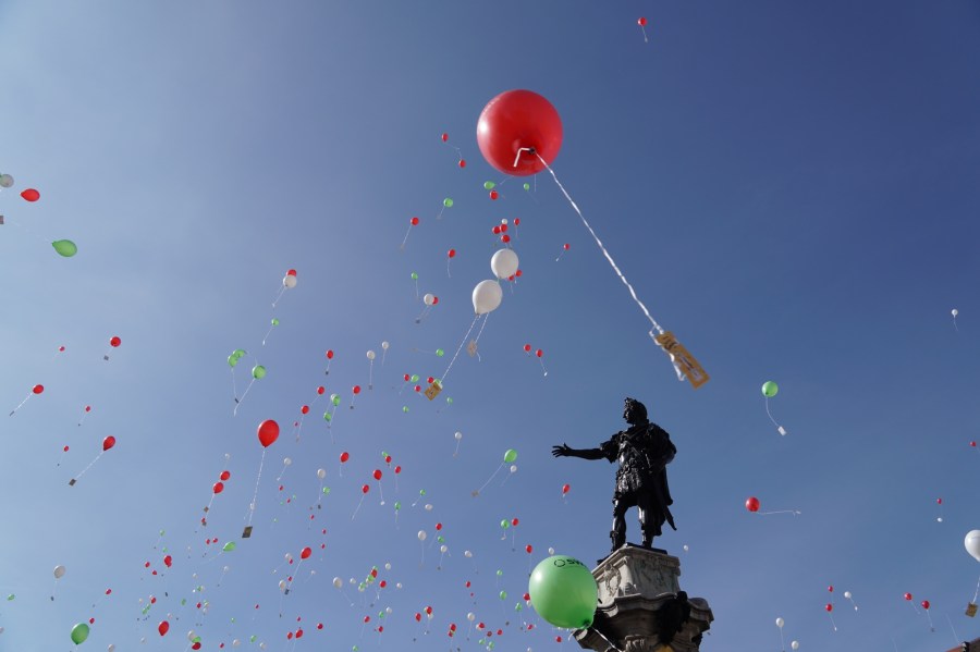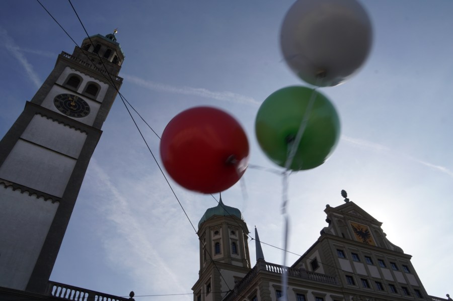 Dann sausen die Luftballons in den – wie bestellten – blauen Augschburger Himmel