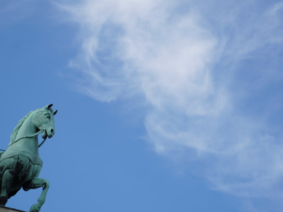 unscharfe Quadriga. Wenns ausnahmsweise mal einen Kastanienbaum gibt.