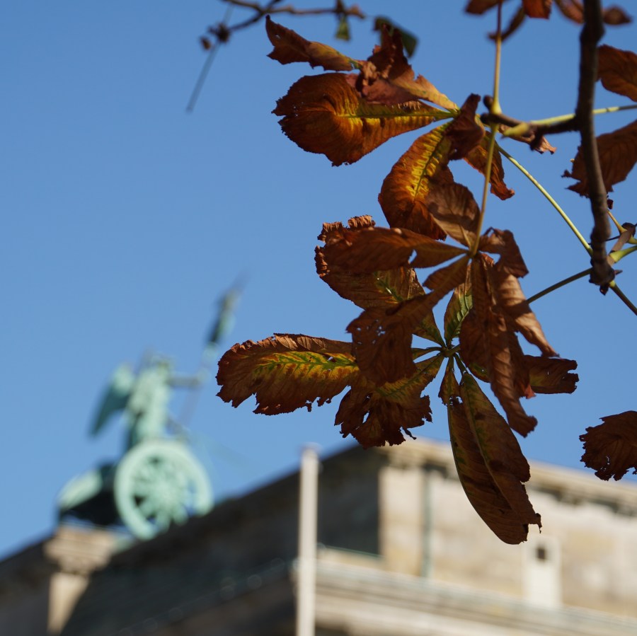 unscharfe Quadriga. Wenns ausnahmsweise mal einen Kastanienbaum gibt.