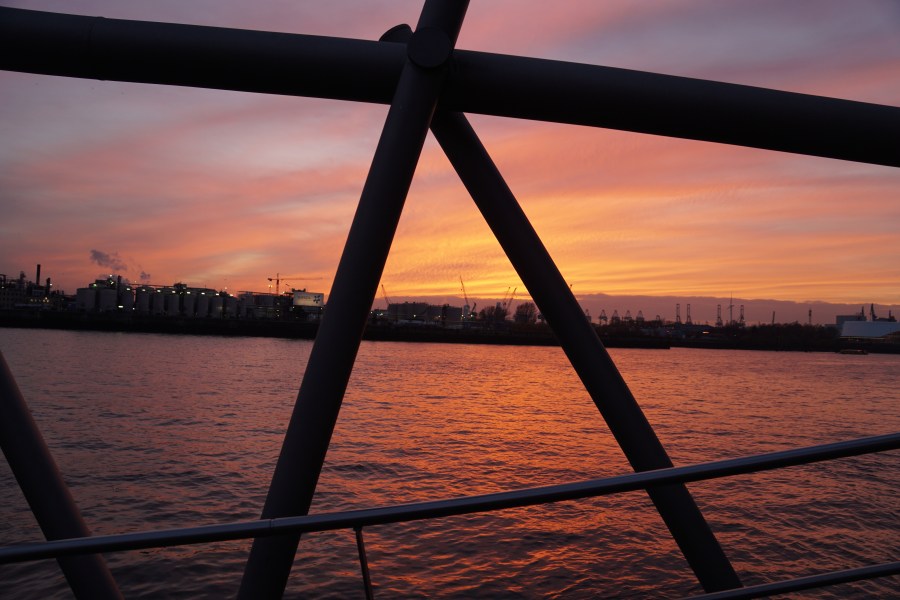 Jetzt war ich schon so oft in Hamburg. Aber einen Sonnenuntergang im Hafen hab ich noch nicht gehabt.