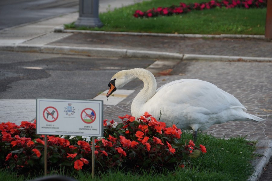 Auf dem Schild steht sinngemäss „keine Viecher und ned ins Beet trampeln“