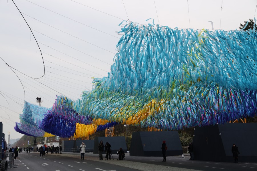 Visions in Motion. Wünsche auf Stoffstreifen, die als Teppich flattern.