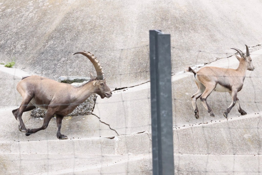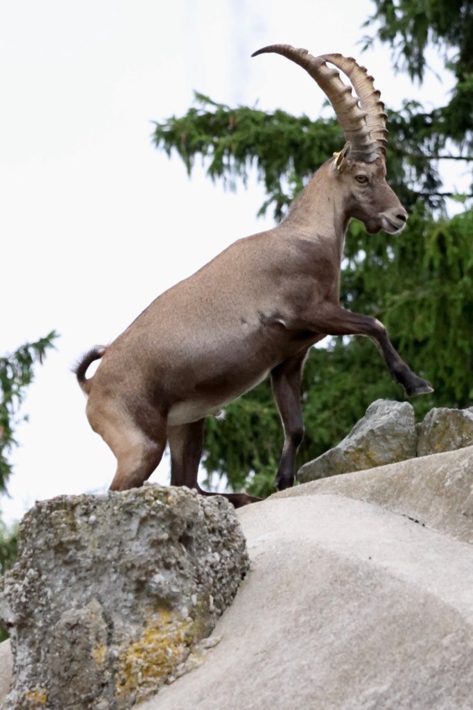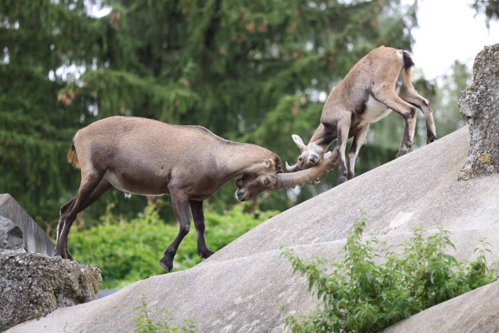 Das ist der Chef hier im Zoo, seit Jahren. Rocky heisst er. Jaja er hat die grösseren Hörner, aber sonst. Naja, halt a weng altmodisch der Alte.
