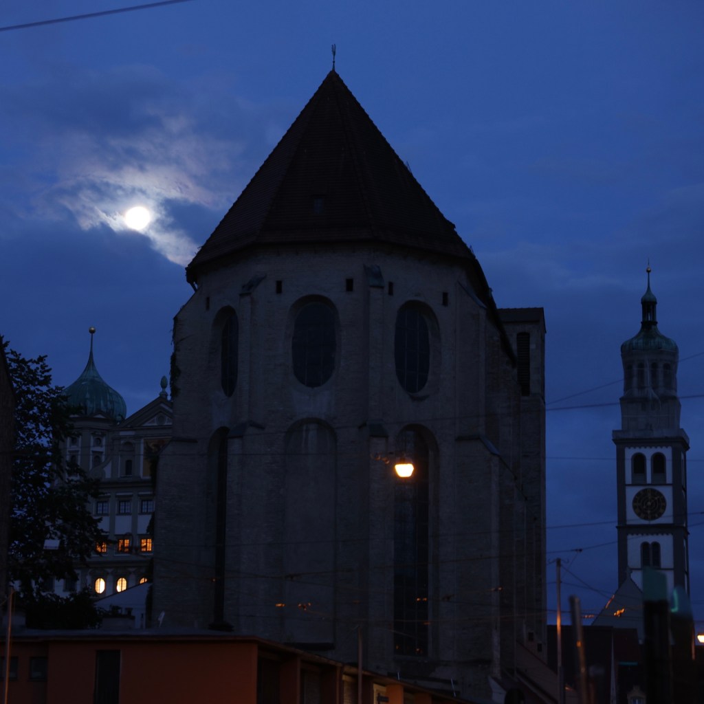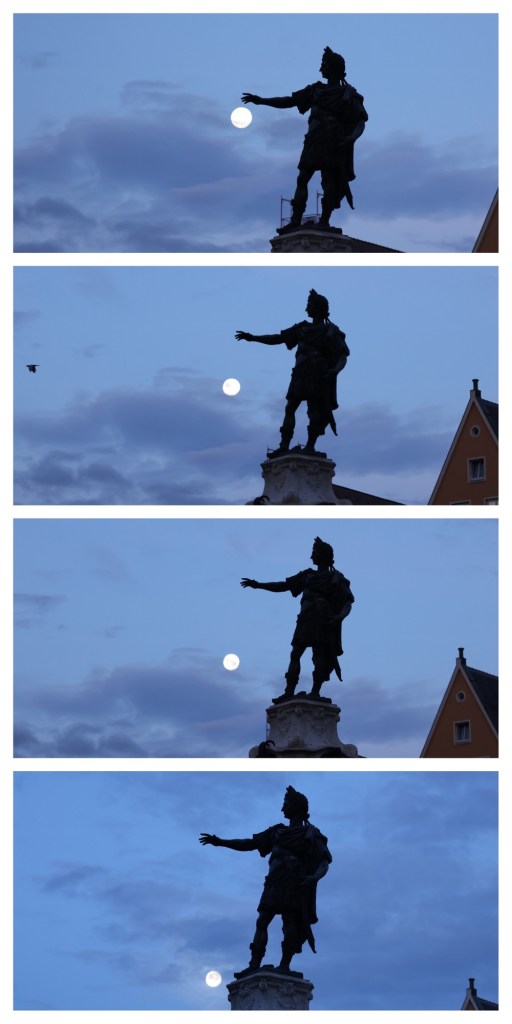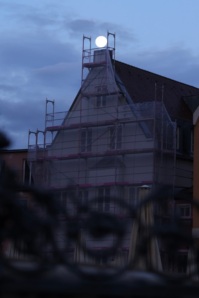Ein Tag nach Vollmond um 6:00 stand selbiger hoch am blauen Augsburger Himmel.
