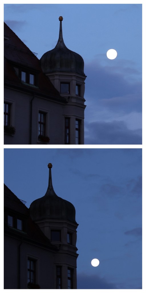 Aber in den nächsten Minuten wurde der Mond sowohl kleiner als auch eierte er ein bißchen.