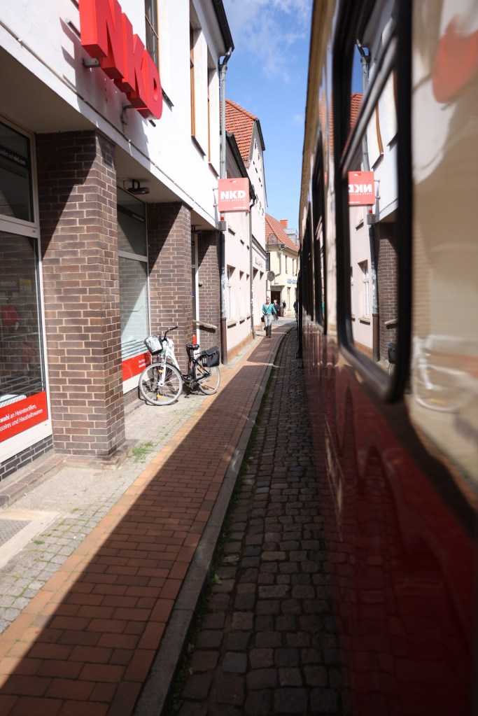 Und da wirds eng. Man fährt hier durch die Fussgängerzone.