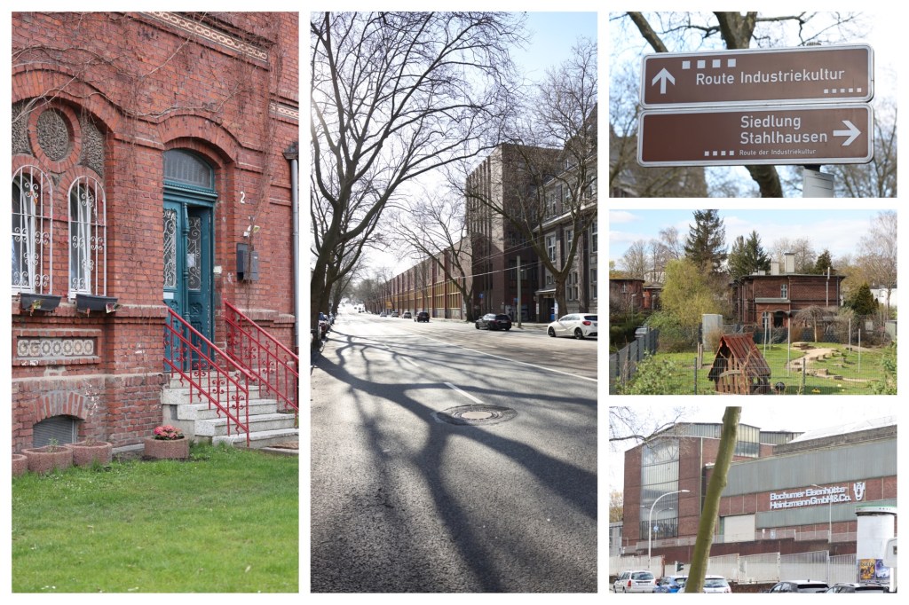 Die Siedlung Stahlhausen (der Name ist Programm) war ein Wohngebiet für Arbeiter in der angrenzenden Stahlfabrik. Einige Häuser aus 1870 sind noch erhalten, einiges nach der Kriegszerstörung im typischen 50er Jahre Stil wieder aufgebaut. Direkt neben der Siedlung sind auch heute noch Stahlwerke.