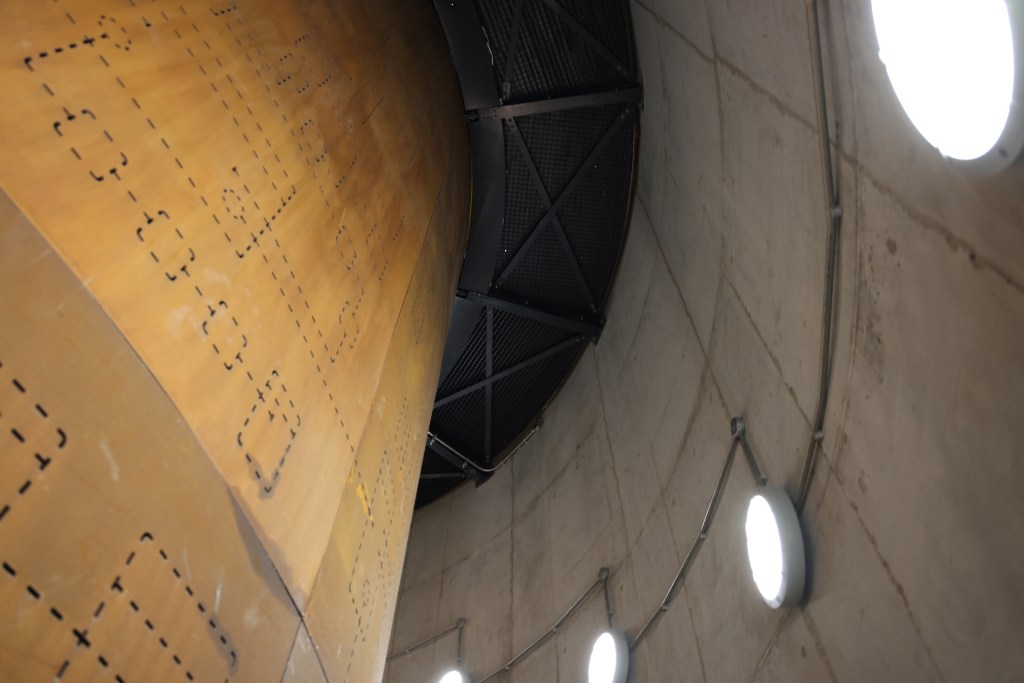 Die alten Silos für Getreide wurden aufgeschnitten und zu einem Durchgang zwischen altem Bau und Erweiterungsbau gemacht. Da krieg ich echt die Klappe vor lauter Staunen nicht mehr zu.