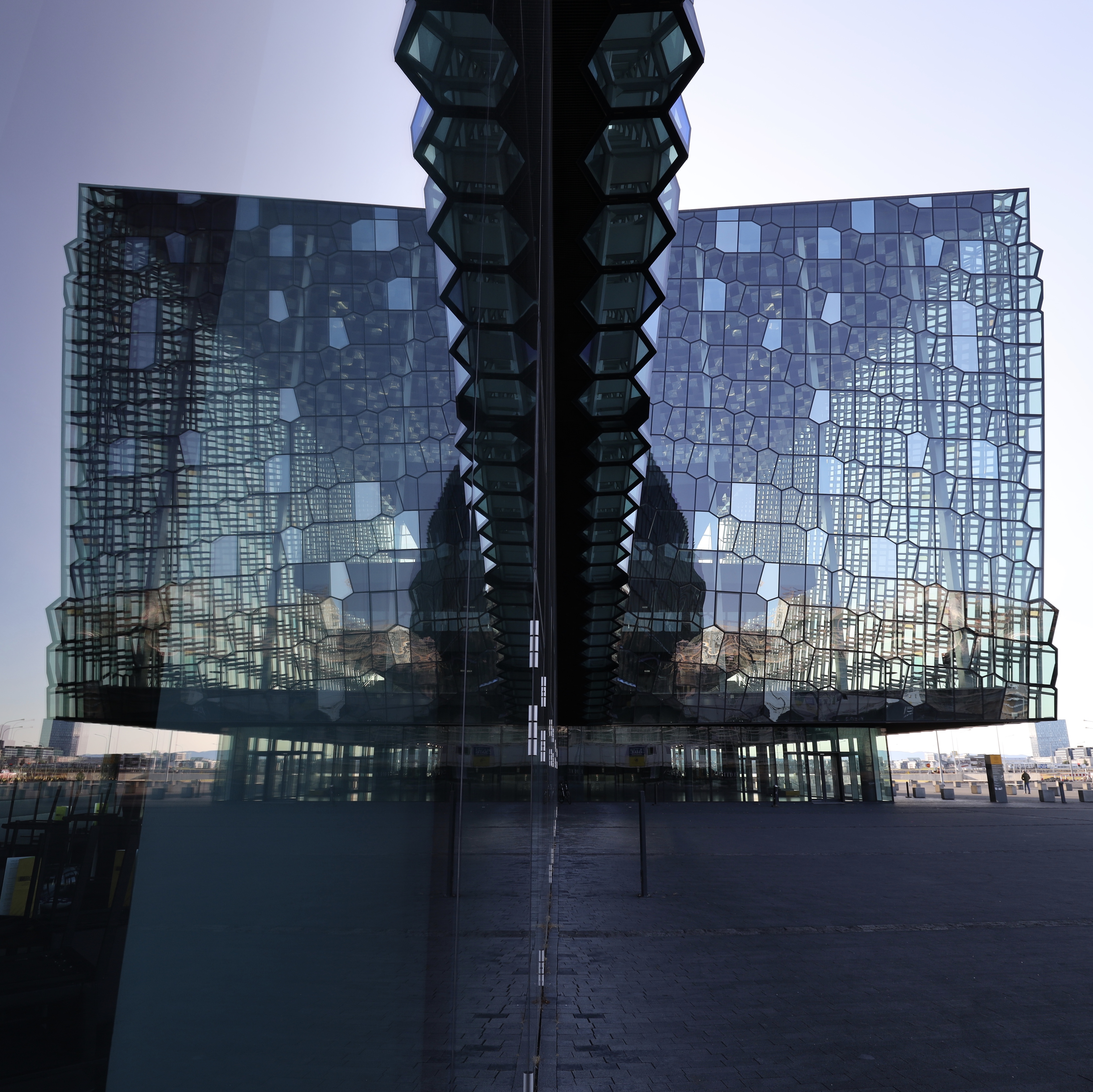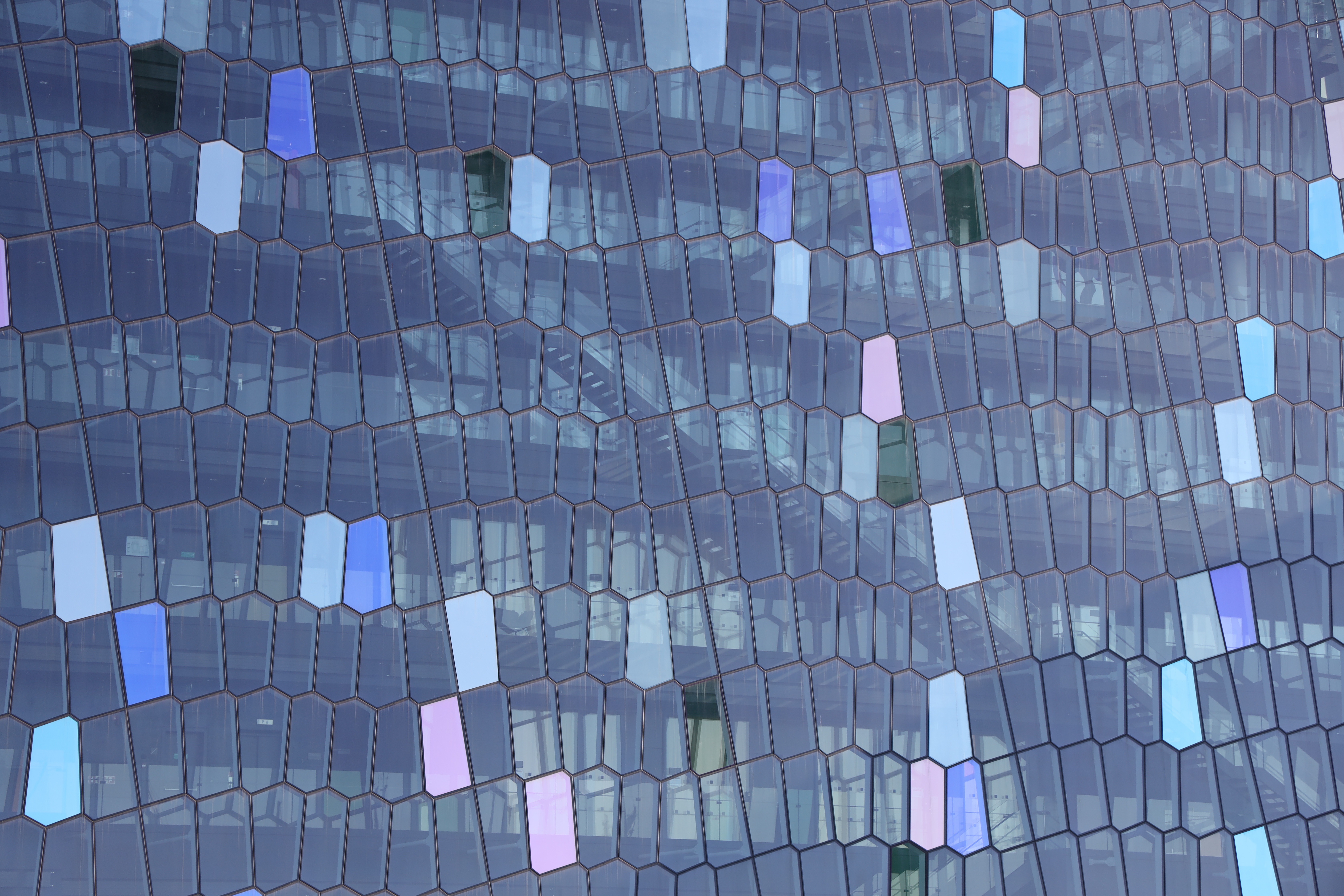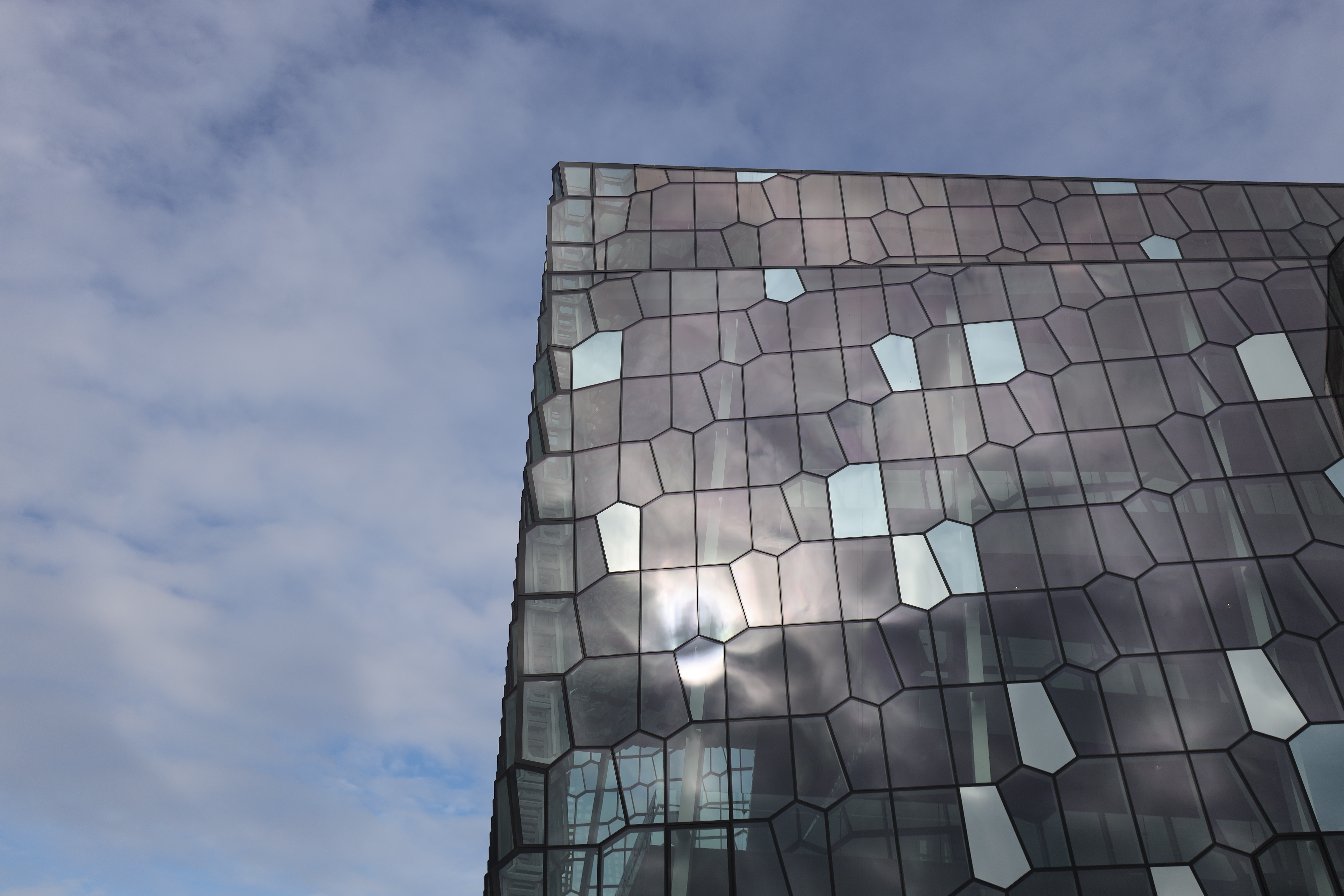Die Waben der Fassade sind Basaltstrukturen nachempfunden, eine Form die Lava nach dem Erkalten einnehmen kann.