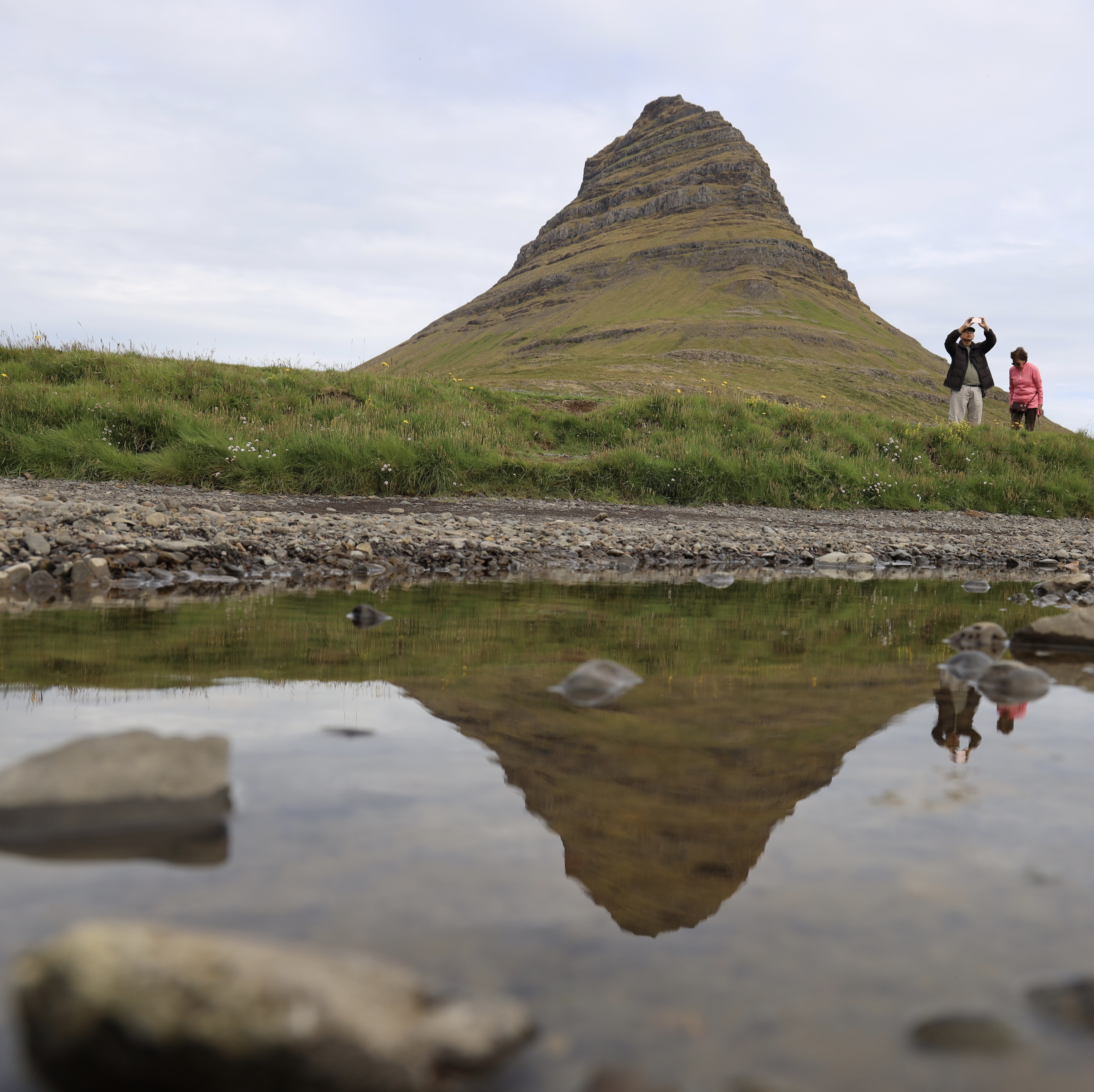 das ist der Kirkjufell, besagter Nachbar, der sich dank dem Flusslauf schön spiegelt.
