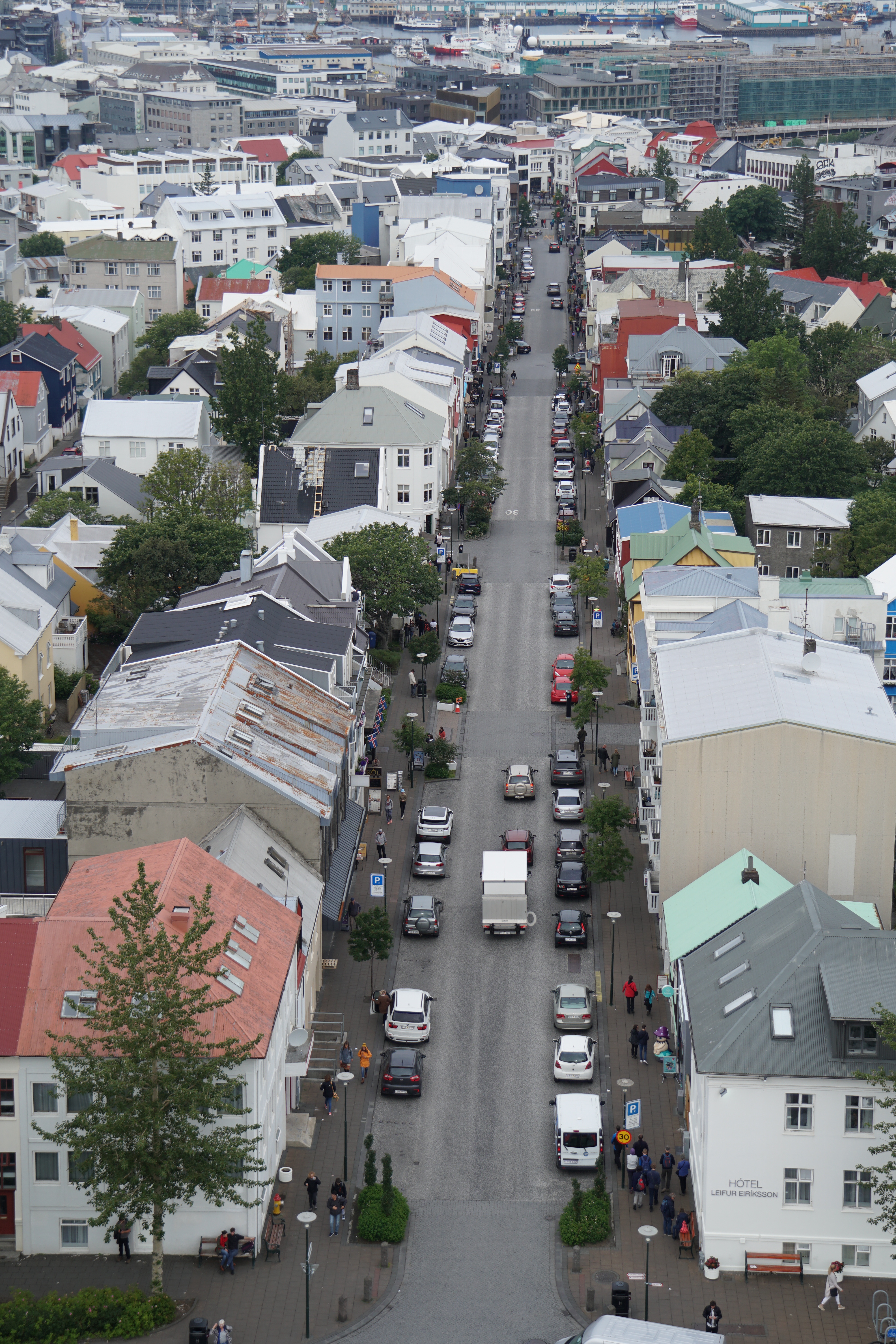 Toller Blick auf die Einkaufsstrasse vom Turm der Hallgrimskirkja