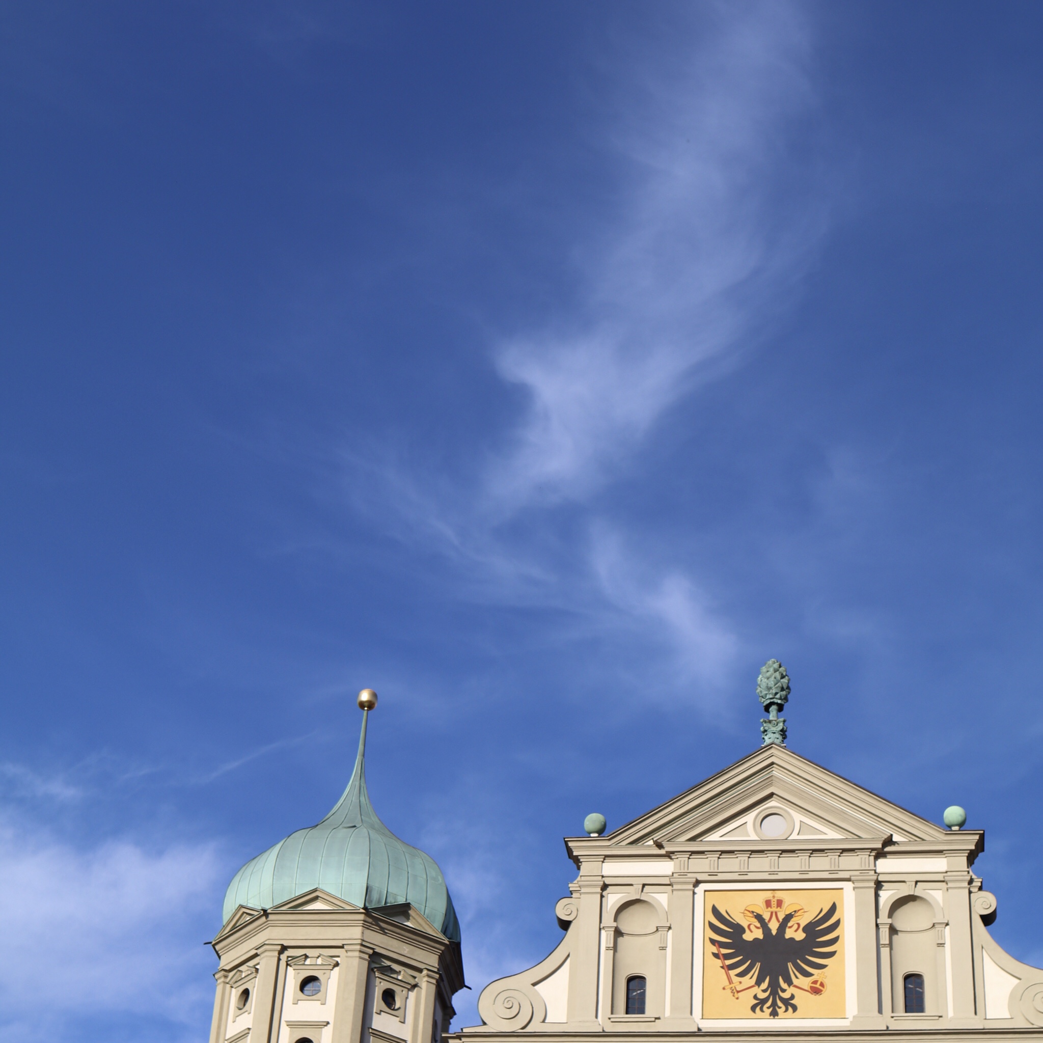 Chillige Atmosphäre, ruhige Töne, ruhige Installation. Thema ist das Leben und Wirken von Elias Holl.