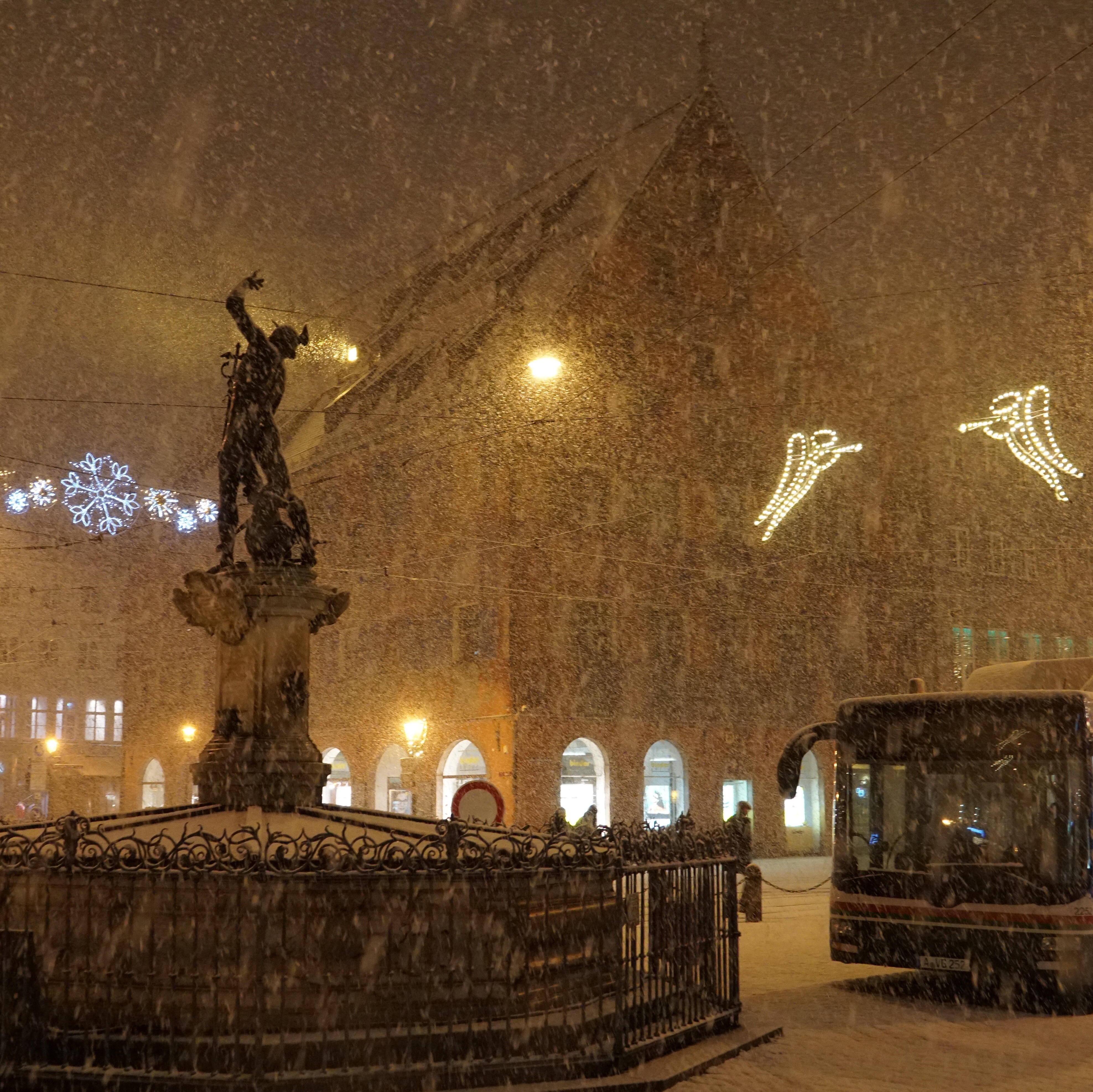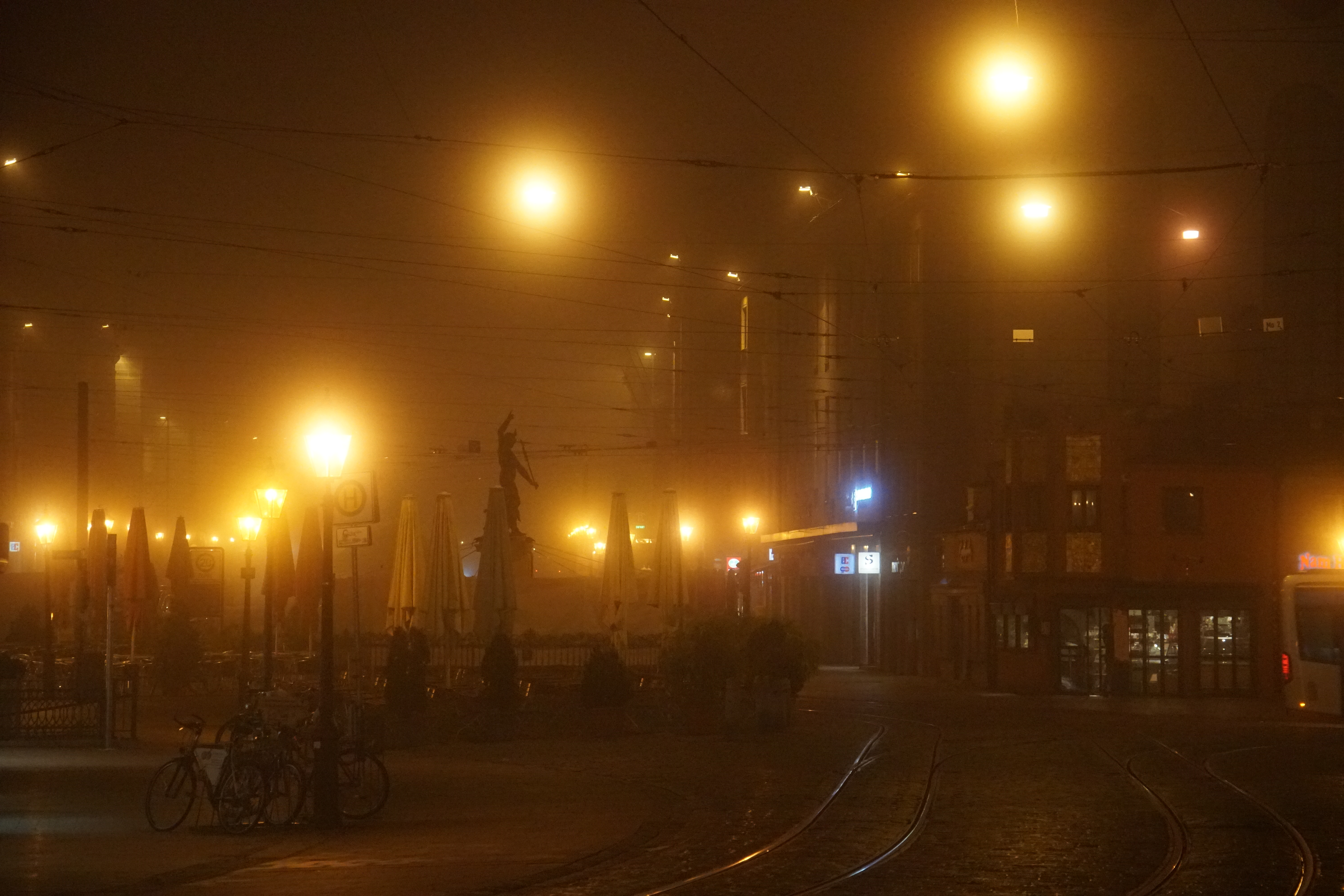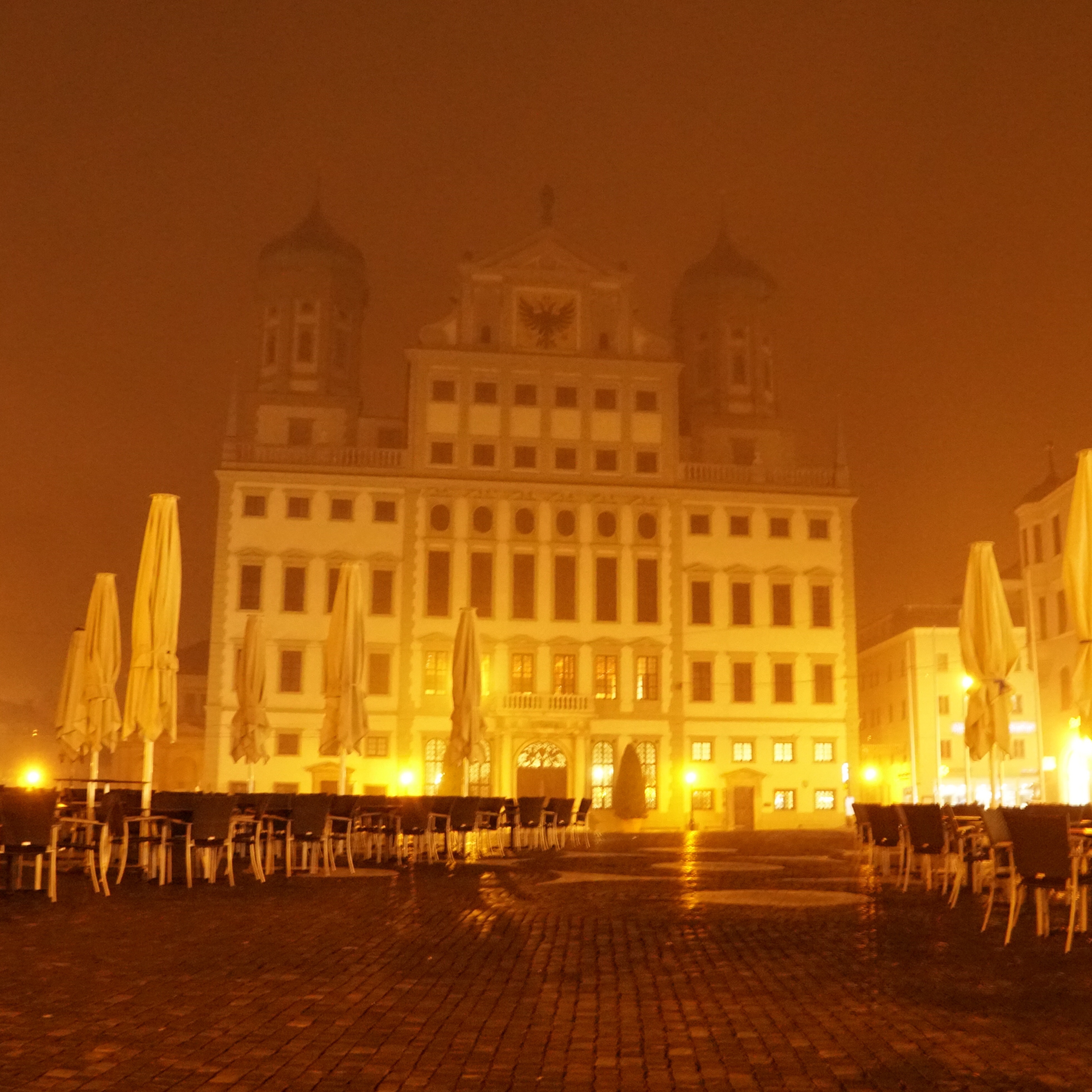 Ein Highlight war der Fuggerplatz mit Nebel und Lichtern.