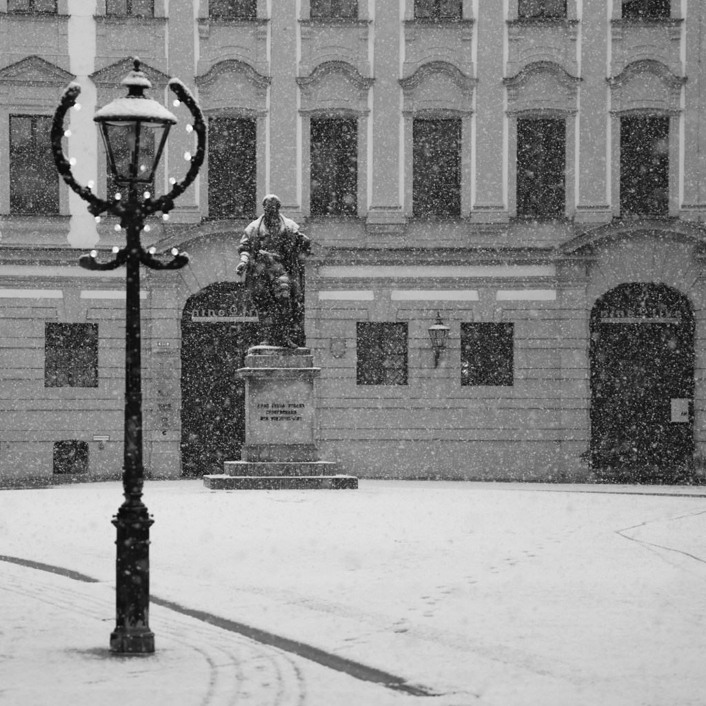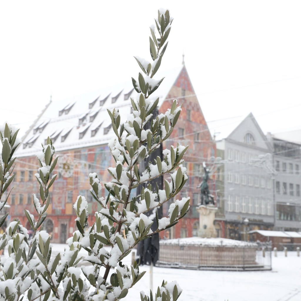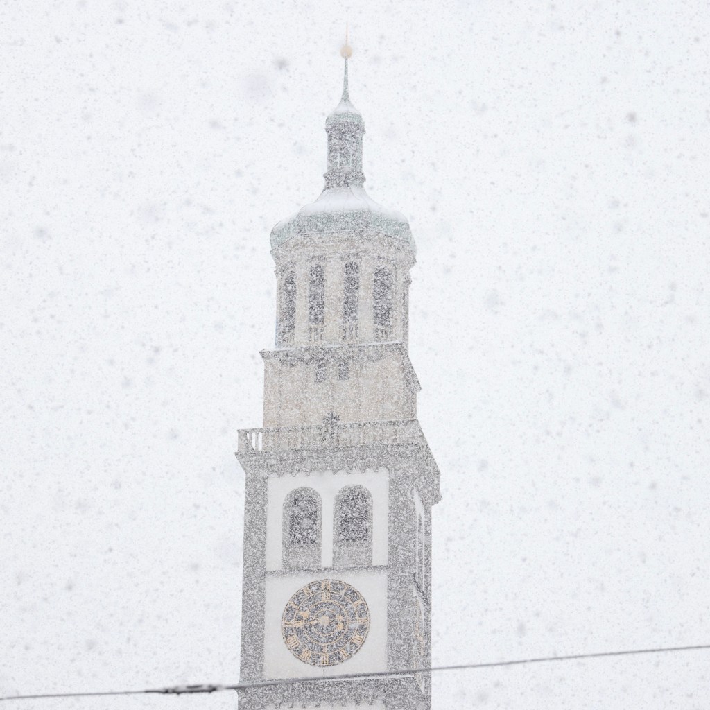 Montag 6:00, ich schlapp hinauf in die Stadt. Hmmm mal gucken was sich heut so fotografisch ergibt… Ach schau an, es graupelt leicht. Sinniere… ob das diesen Winter noch was wird mit dem Schnee?