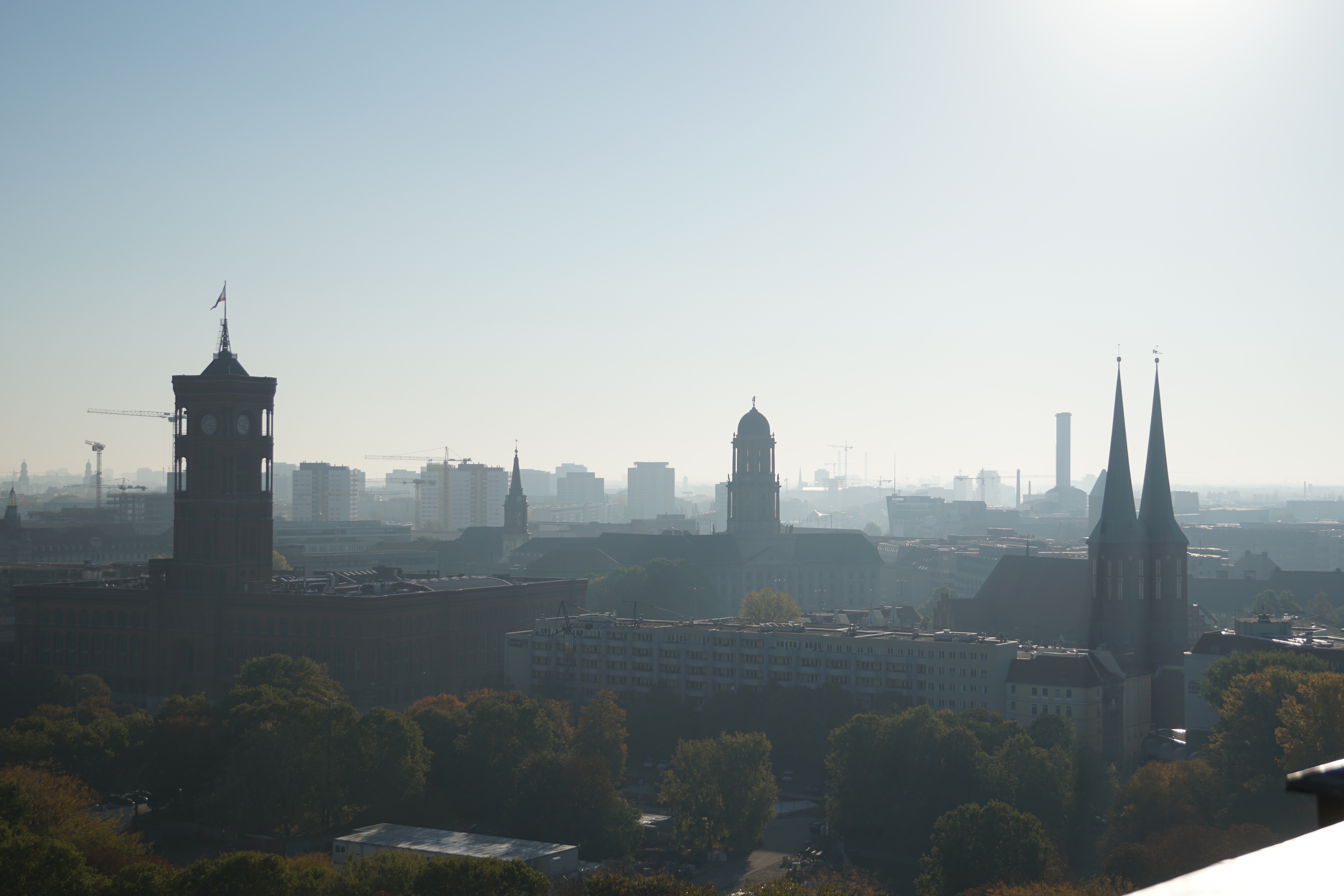nach Osten: Rotes Rathaus, Stadthaus, Nikolaikirche