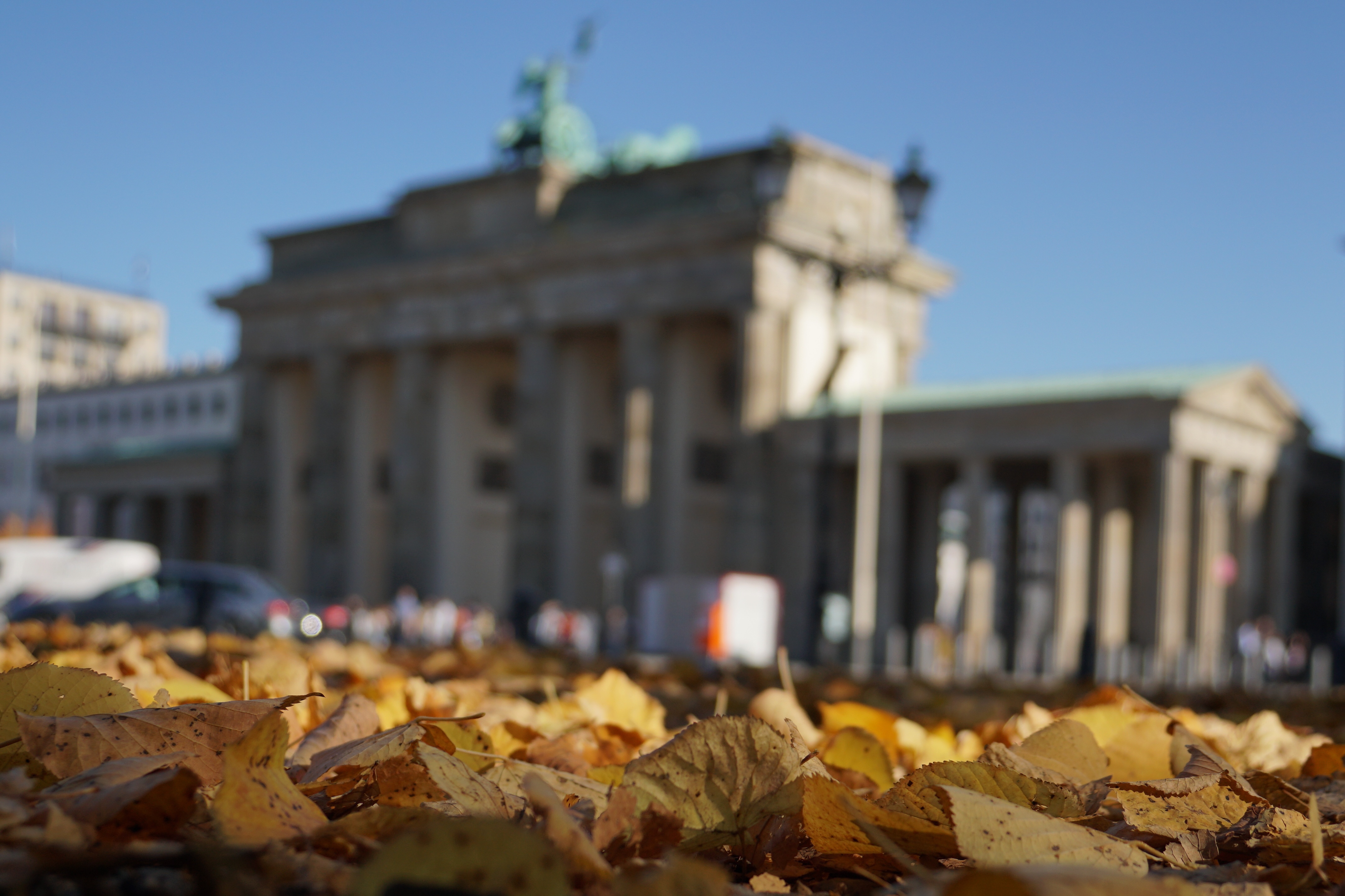 unscharfe Quadriga. Wenns ausnahmsweise mal einen Kastanienbaum gibt.