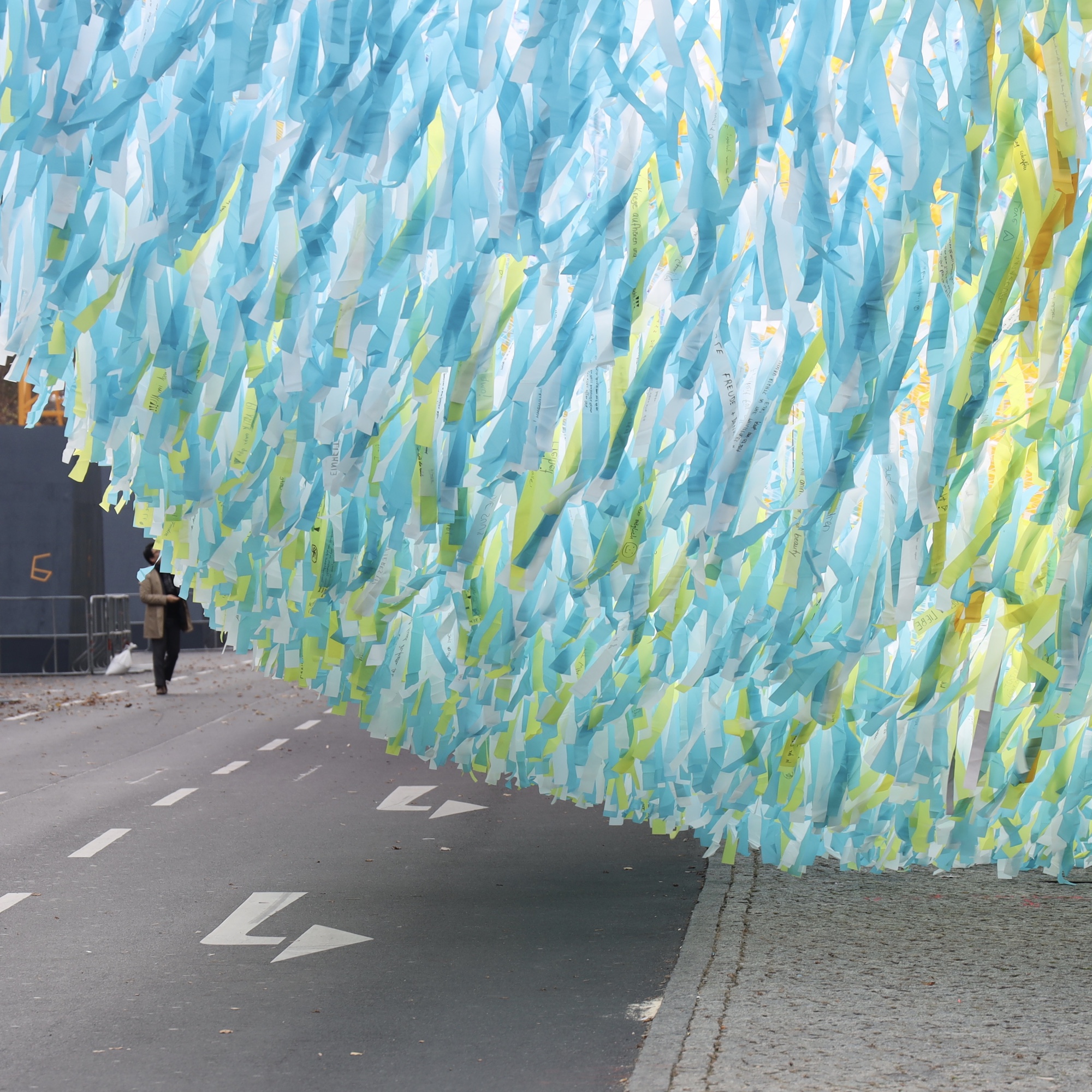 Visions in Motion. Wünsche auf Stoffstreifen, die als Teppich flattern.
