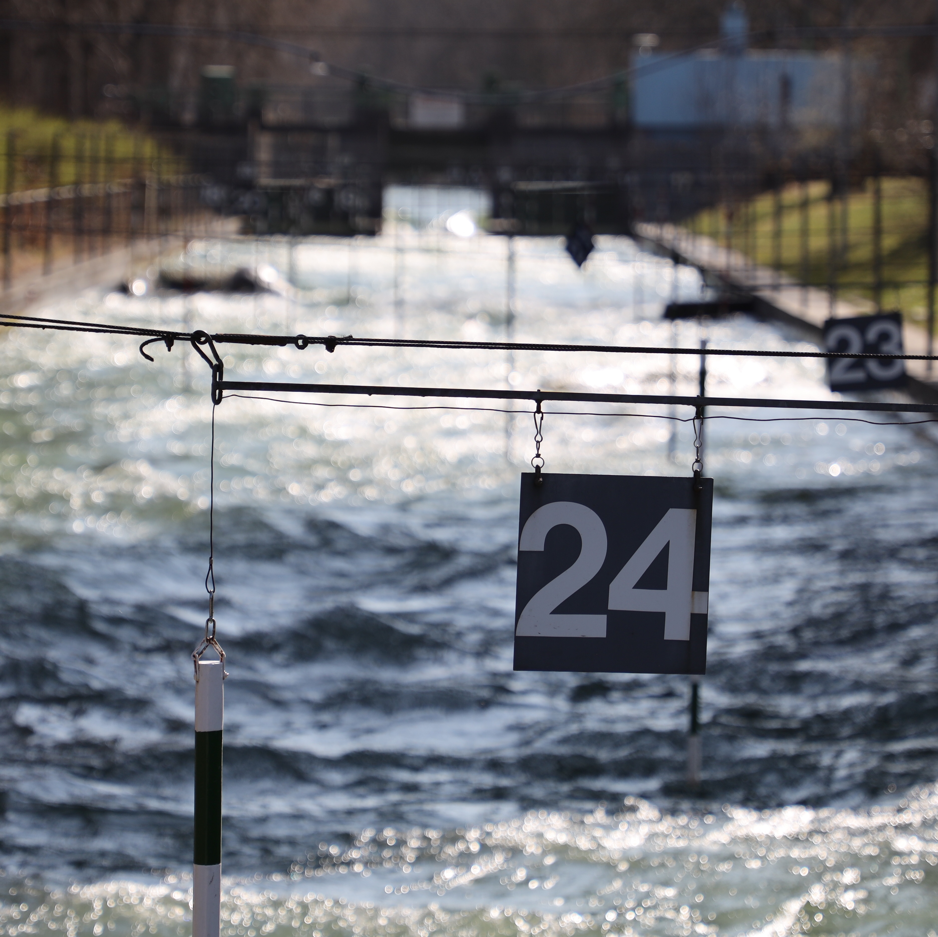 Und es war ja echt knapp, dass die WM stattfinden konnte. Die Trockenheit hatte zur Folge, dass nicht genug Wasser im Lech war. Durch dieses kleine provisorische Wehr wurde dann aber die WM gesichert.