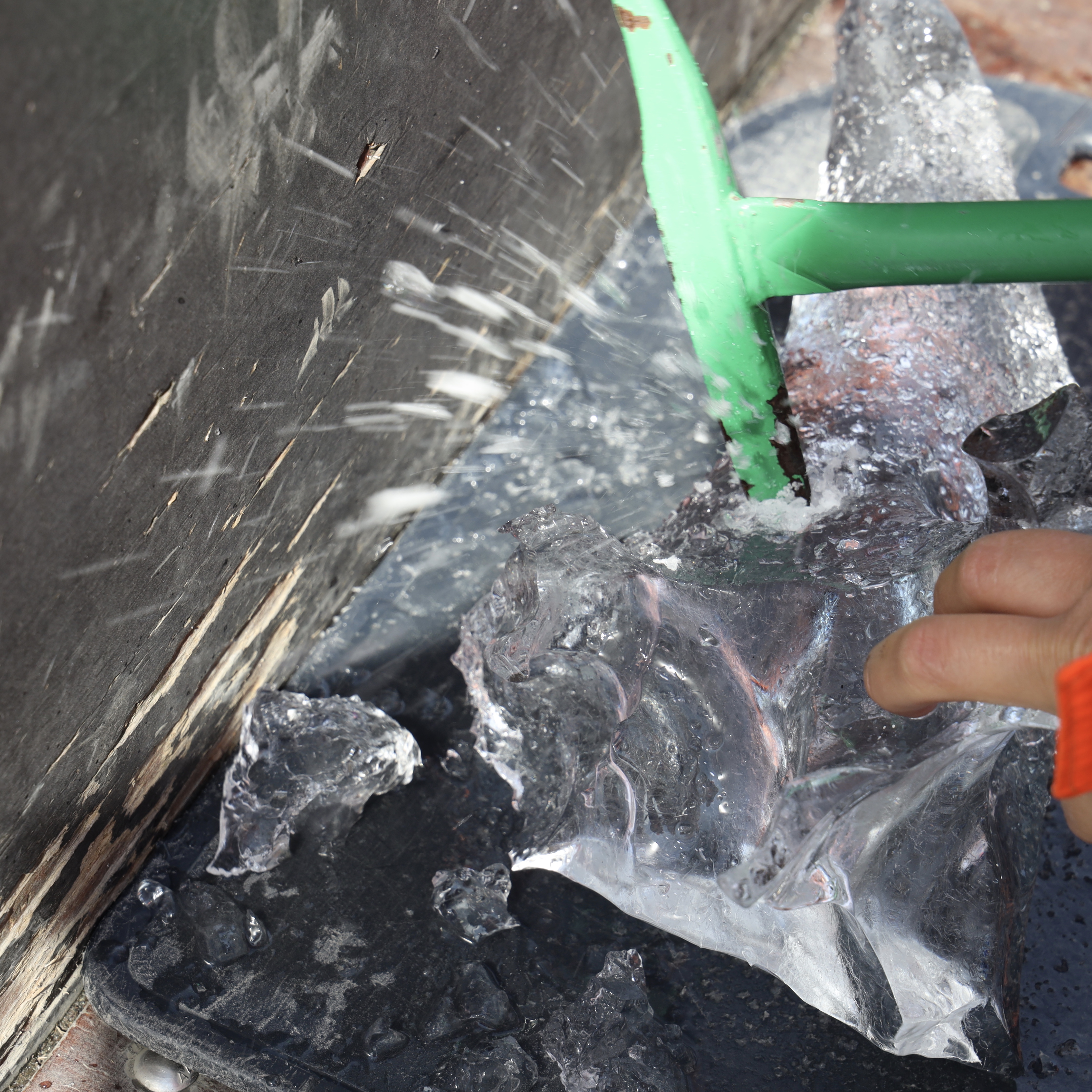 an Bord wurde eine der ganz klaren Eisstücke herausgefischt und zum Lutschen kleingehauen