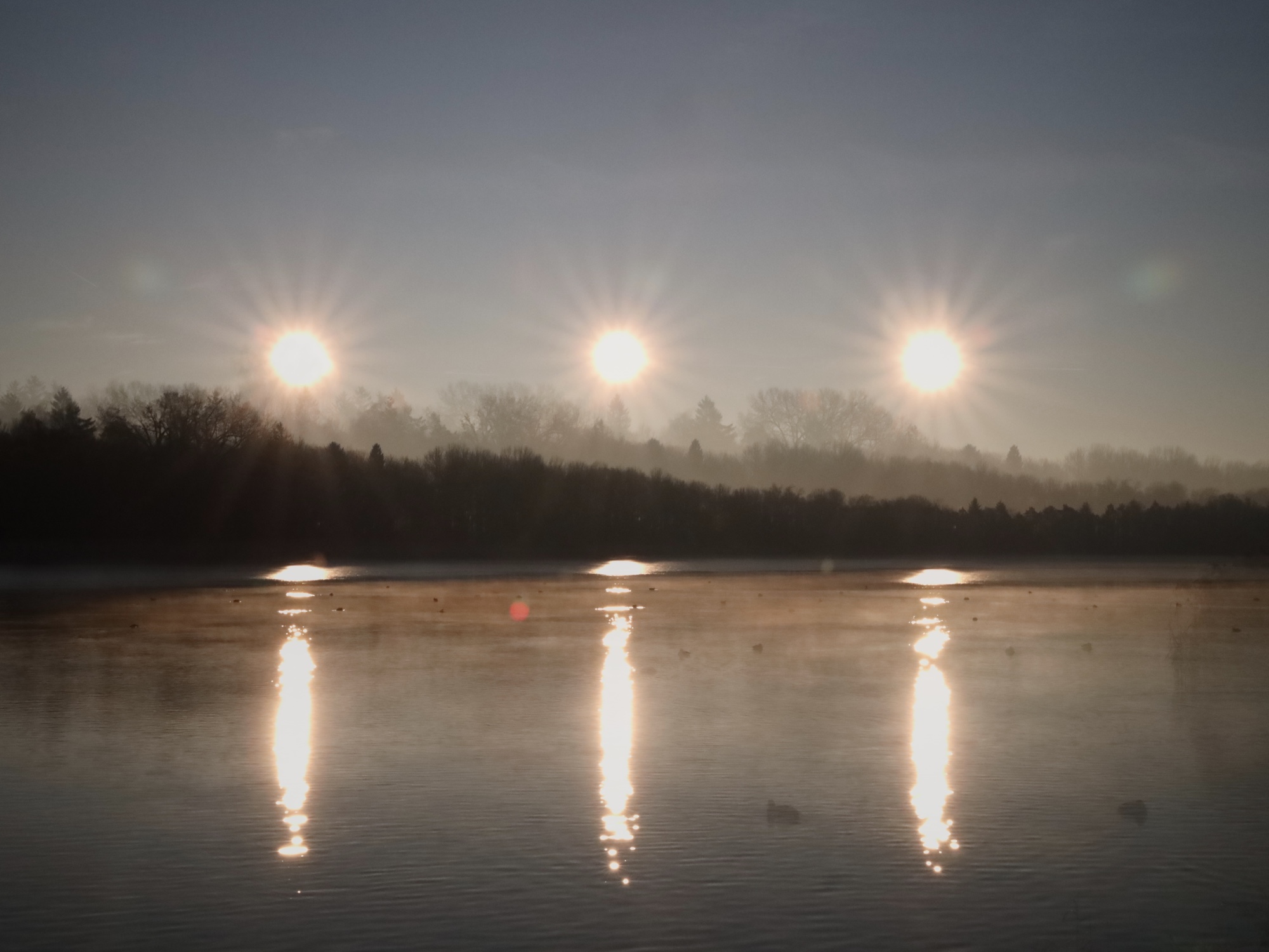 Huch da sind drei Schwäne im Kuhsee und er ist doch noch größtenteils zugefroren.