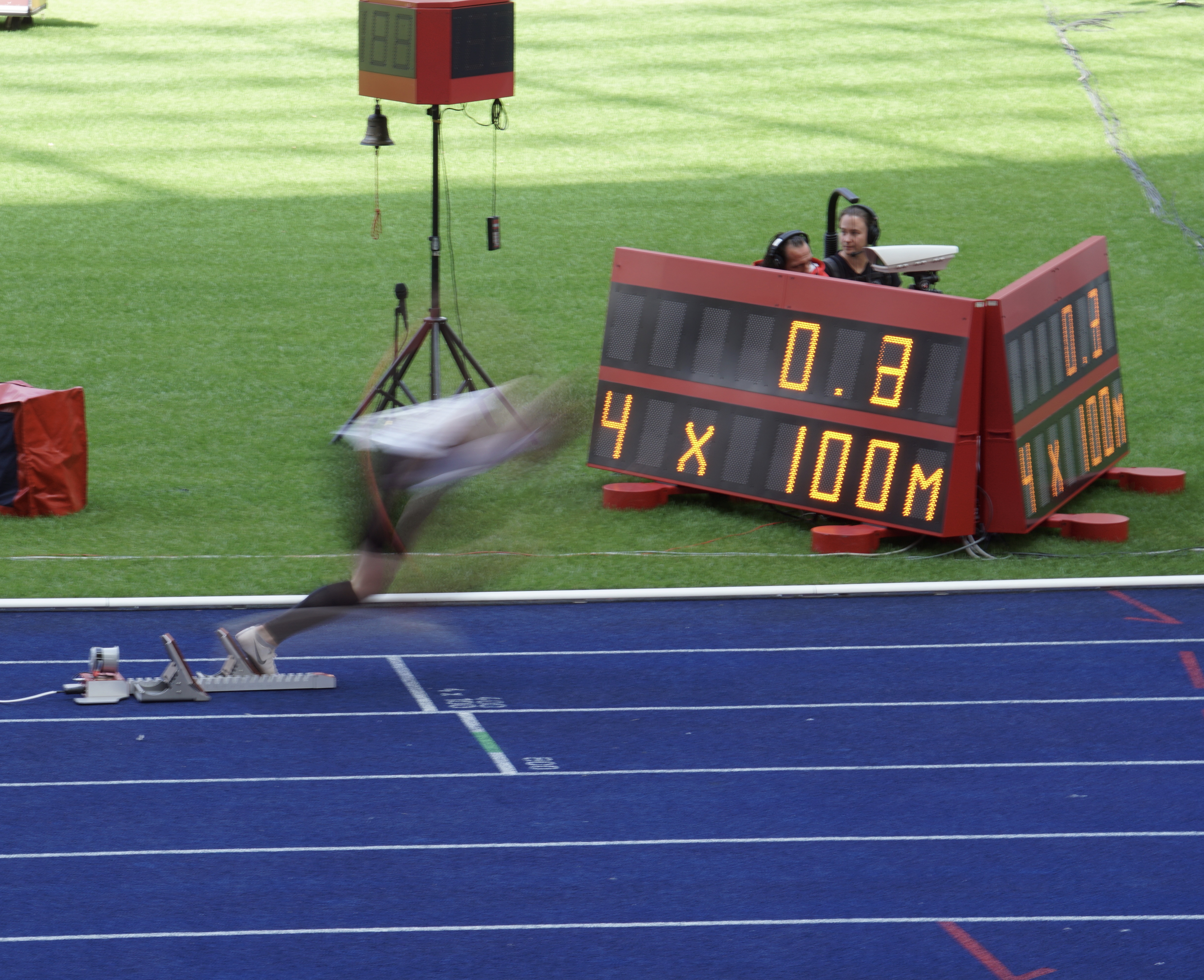 Klasse dass es gerade ganz ursprünglich ist, mit Leichtathletikbahm und Rasen.