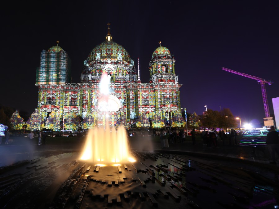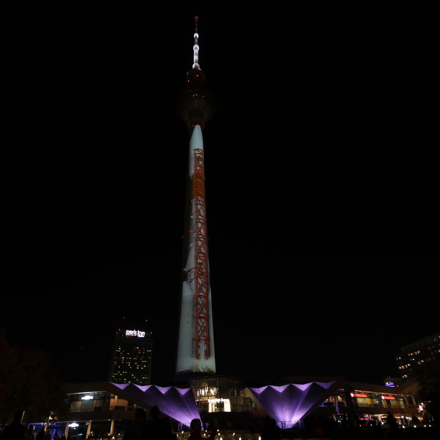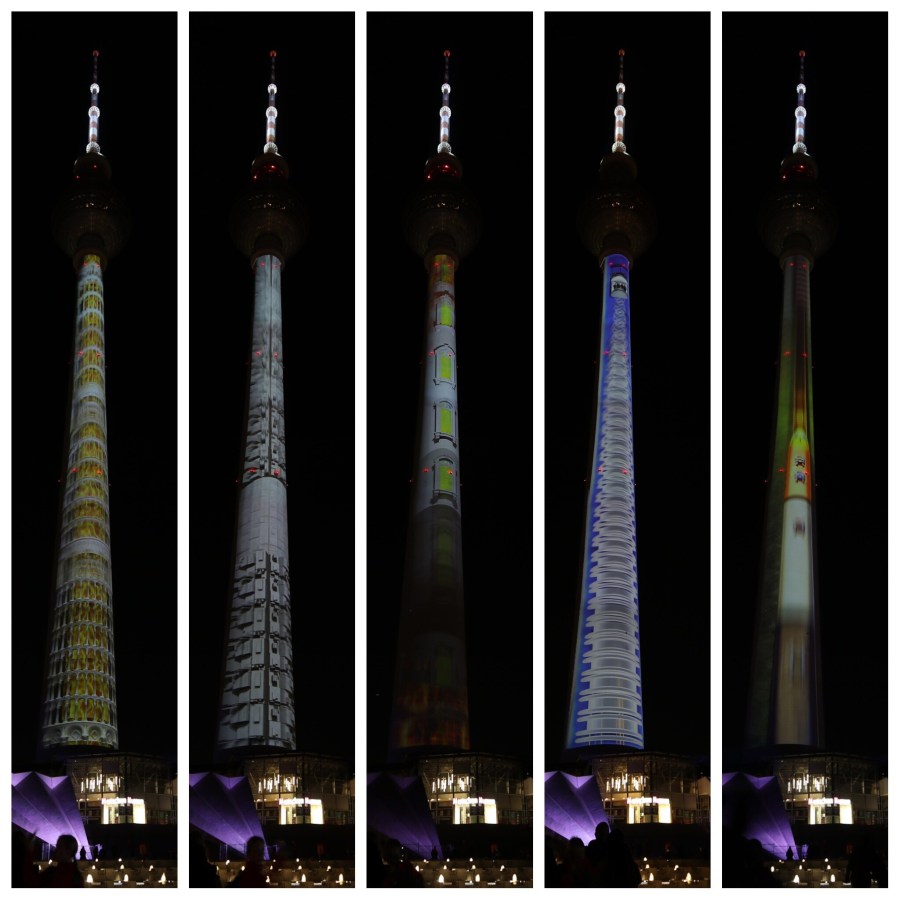 Abends dann zum Finale des Festival of Lights gabs zwei besondere Kräne