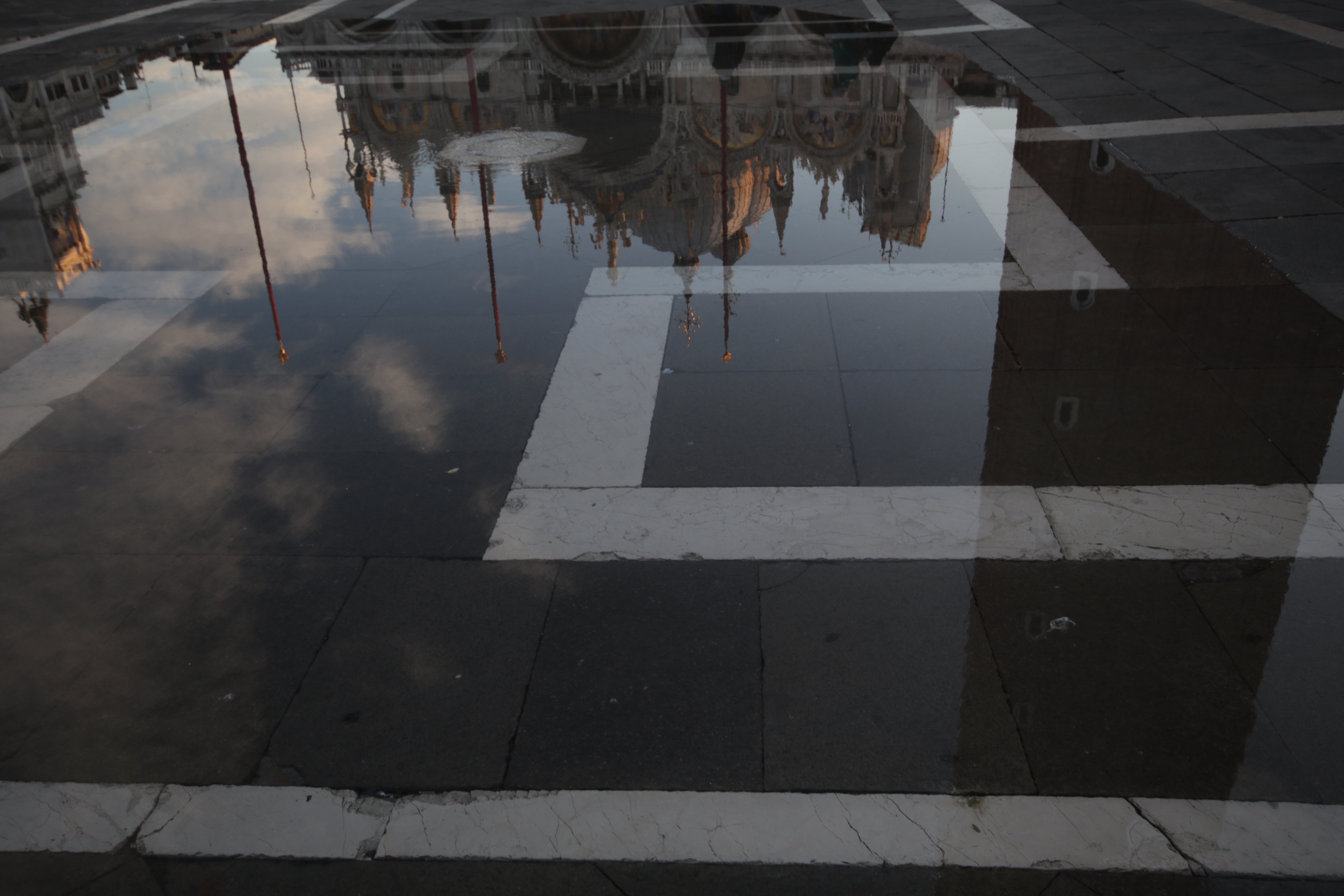 Pozzwas? Pozzanghera ist das italienische Wort für Batschlach, für die Nicht-Augsburger Pfützen. Und in Venedig muss man nicht auf Regen warten sondern Acqua Alta, das Hochwasser bringt herrliche riesengrosse Wasserflächen. Eigentlich zerstörerisch, aber halt auch furchtbar schön.